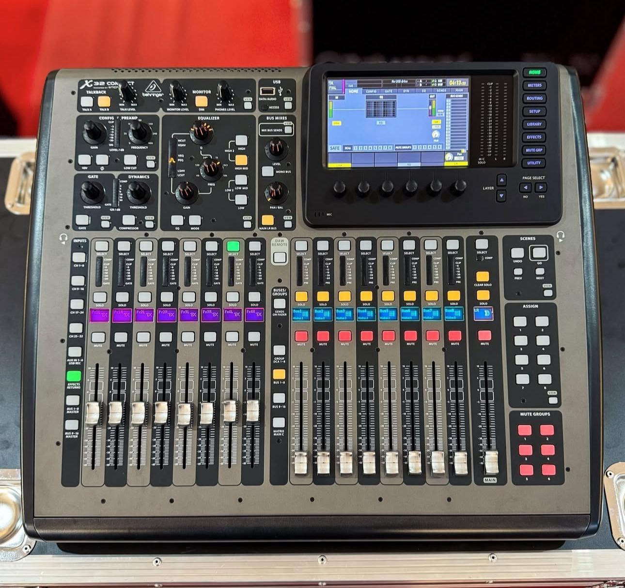 This Behringer X32 Compact digital mixing console is in excellent working condition, thoroughly tested and cleaned. Featuring the same processing power as the original X32 but in a smaller, streamlined footprint, the X32 Compact is ideal for mobile setups, small venues, worship, and studio applications.