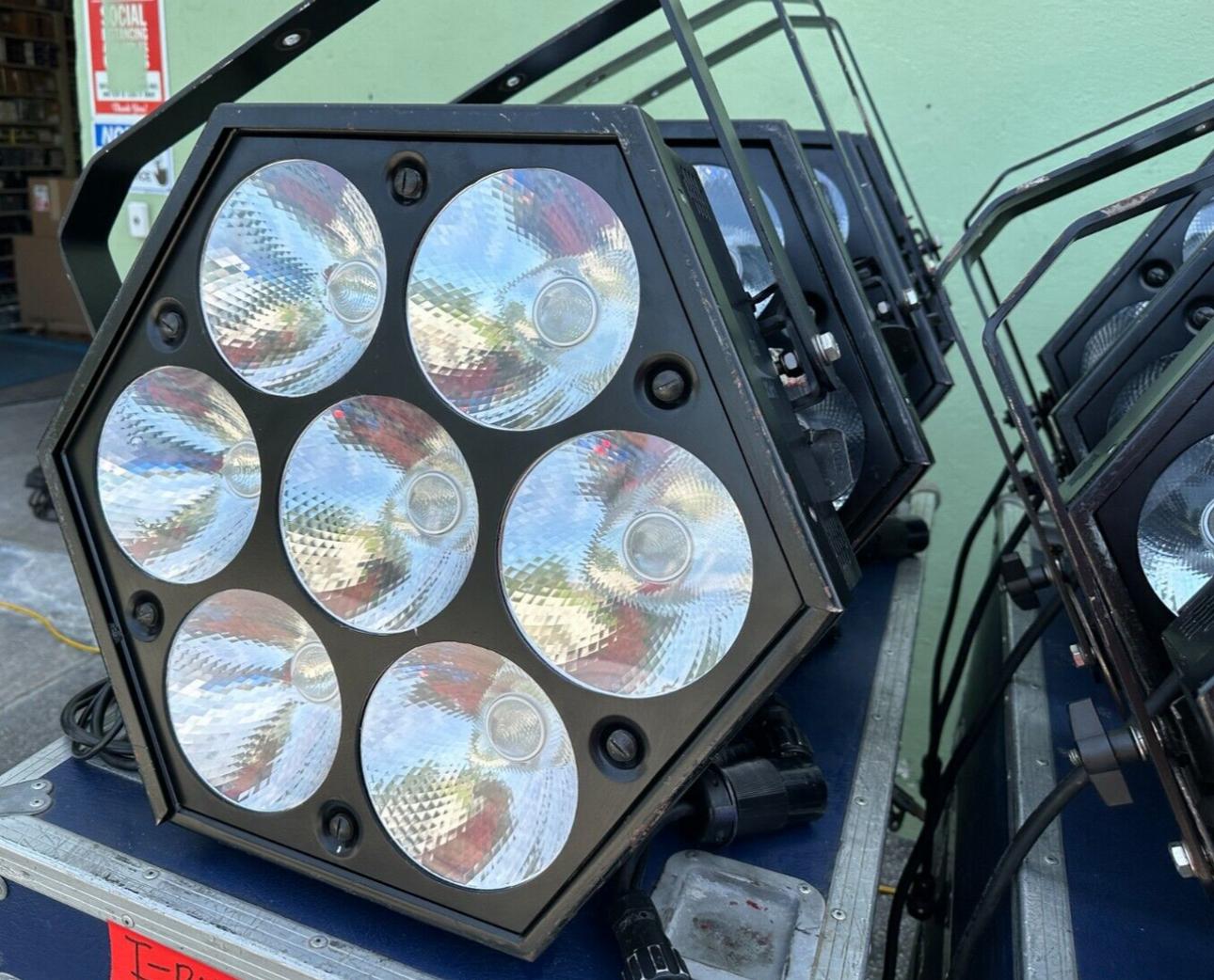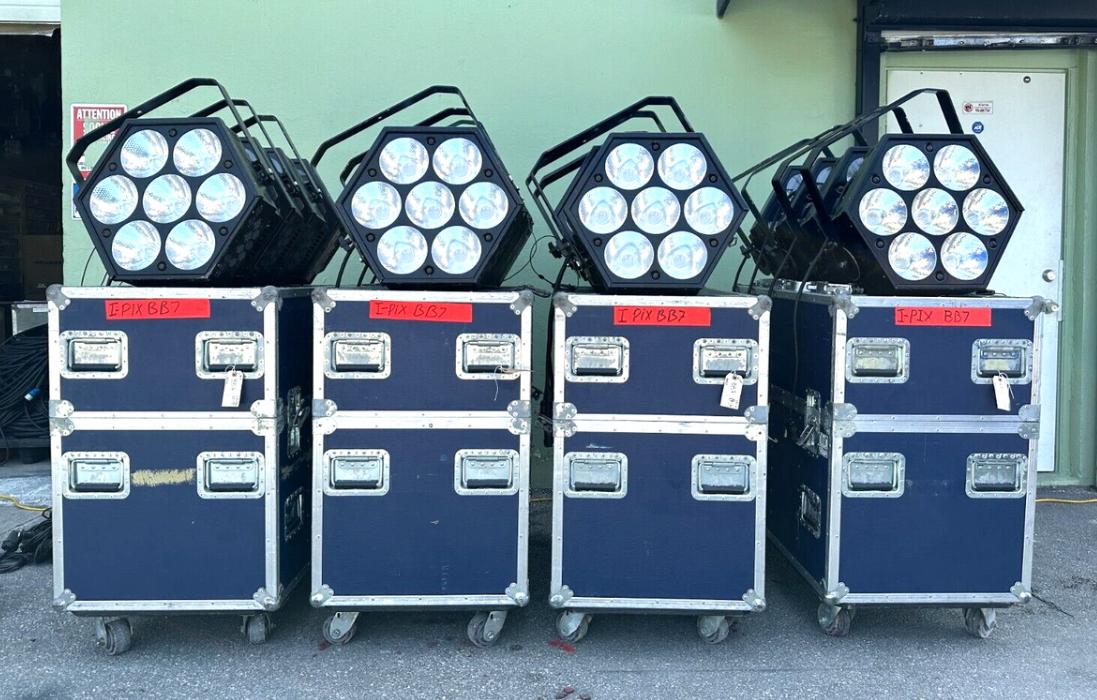 This listing includes four (4) I-Pix BB7 LED Beam Lights housed in a durable blue rolling case. These high-performance LED fixtures are ideal for stage lighting, concerts, theater, and event production. All units are in good working condition with light cosmetic wear consistent with professional use.