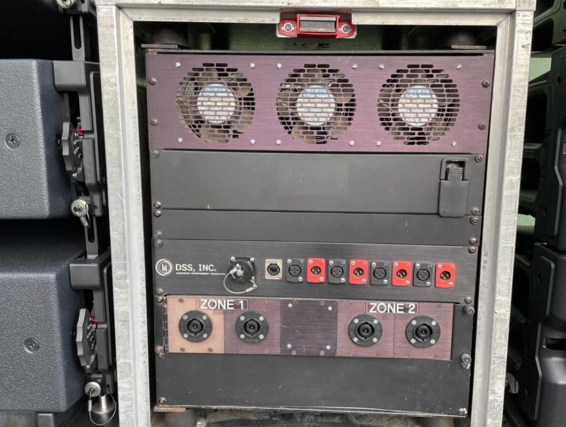 •Rack-mounted in road case with integrated cooling and power wiring
